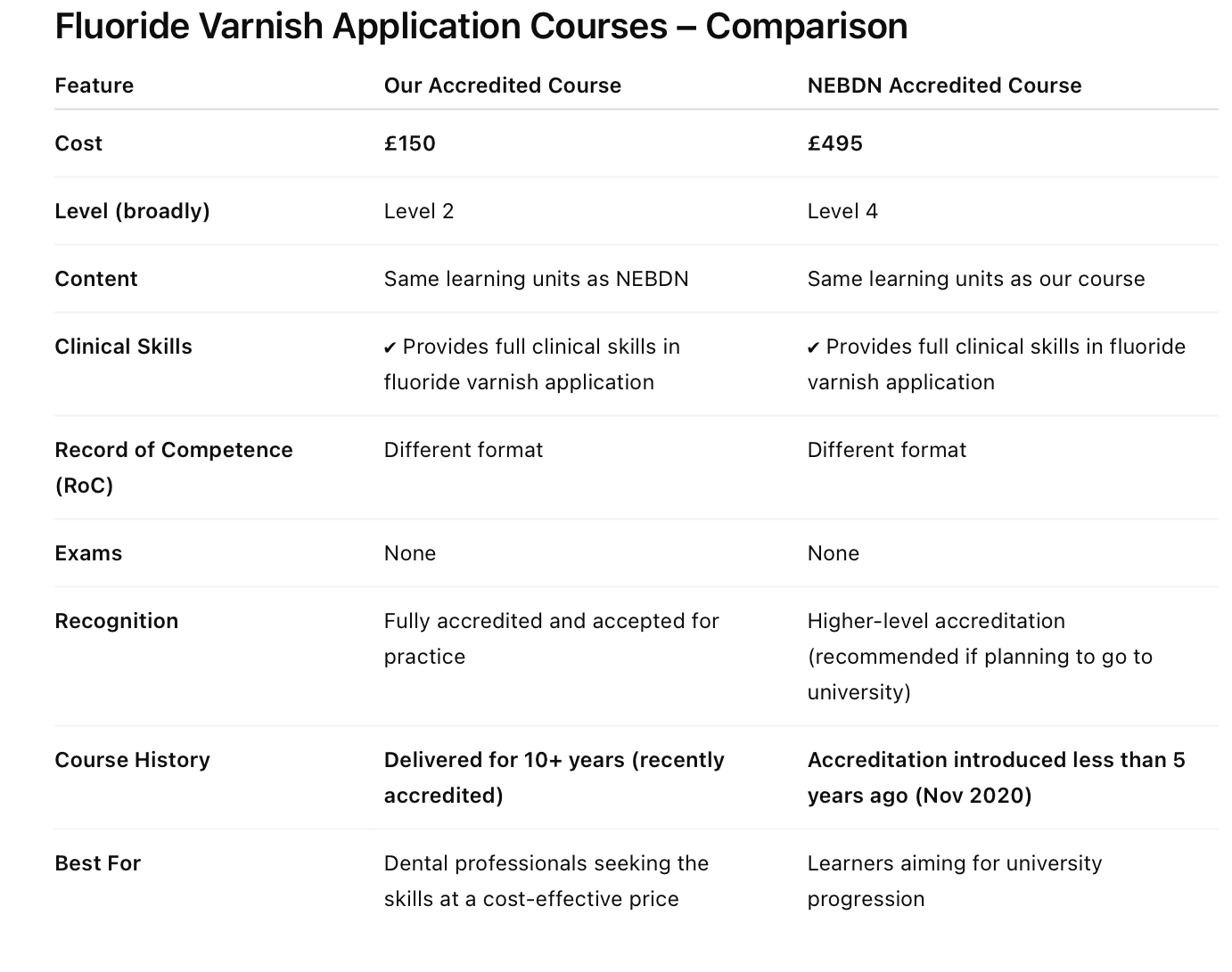 This course provides accredited training for dental nurses to become competent and confident in applying fluoride varnish under the prescription of a dentist or as part of a structured oral health programme.